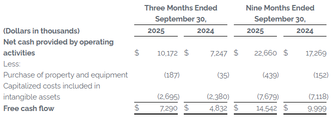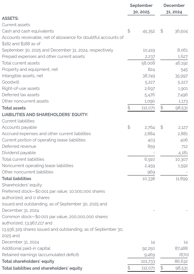 - Cash and cash equivalents were $45.4 million as of September 30, 2025.
