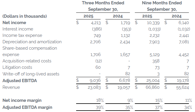 (1) The tax effect of adjustments is calculated using the expected federal and state statutory tax rate. The expected federal and state income tax rate was approximately 26.00% for the three and nine months ended September 30, 2025 and 2024.
