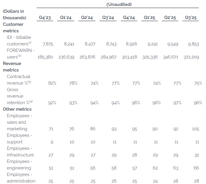 (1) We define a billable customer of IDI as a single entity that generated revenue in the last three months of the period. Billable customers are typically corporate organizations. In most cases, corporate organizations will have multiple users and/or departments purchasing our solutions, however, we count the entire organization as a discrete customer.
